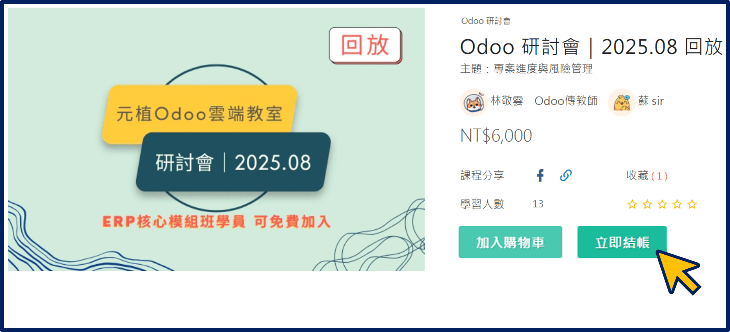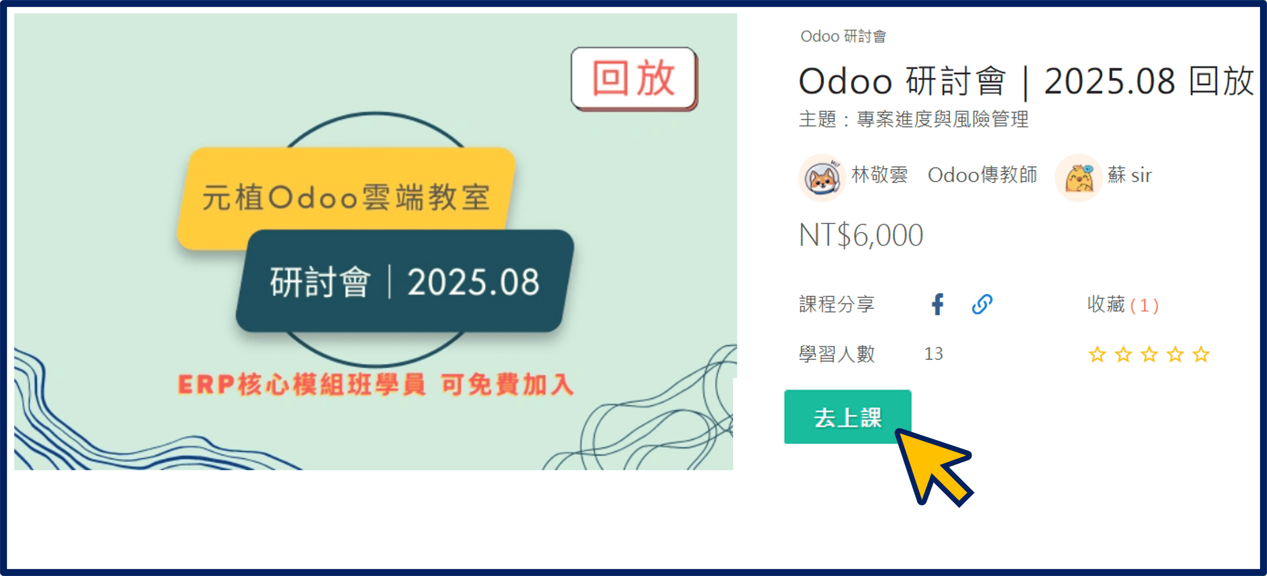 本課程提供「 ERP 核心模組班學員」免費觀看回放課程。