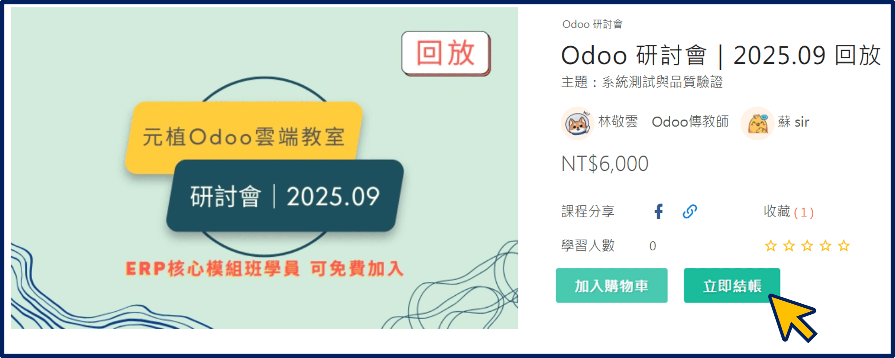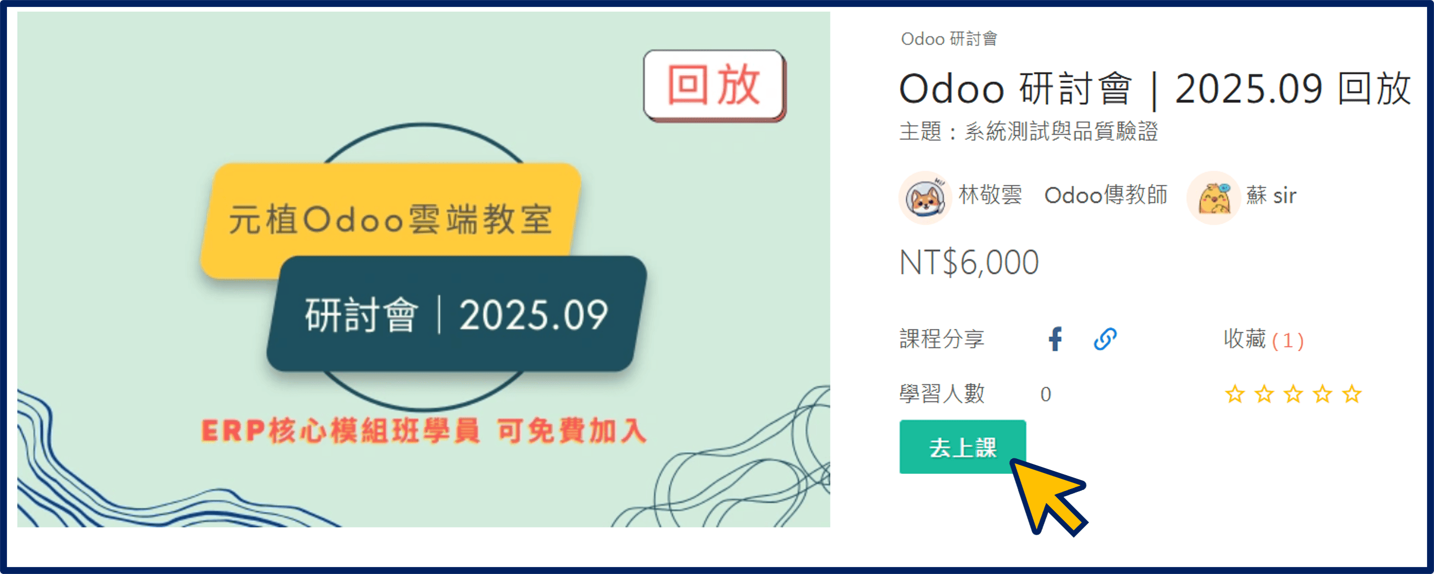 本課程提供「 ERP 核心模組班學員」免費觀看回放課程。